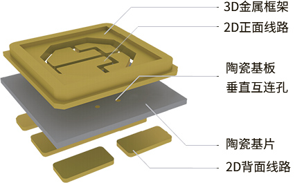 薄膜電路陶瓷封裝基板是一種通過磁控濺射薄膜金屬化與電鍍制程的技術:即根據應用需要,在高導熱的陶瓷基體上,采用薄膜金屬化及影像轉移方式制作2D金屬線路,然后采用TCV(Through Ceramic Via) 技術形成雙面布線間的垂直互連,最后采用堆疊技術獲得與陶瓷基體結合緊密的一體式3D金屬框架?;诒∧る娐饭に嚕ㄟ^磁控濺射實現陶瓷表面金屬化,通過電鍍實現銅層和金成的厚度大于10微米以上即DPC(DirectPlateCopper-直接鍍銅基板)。